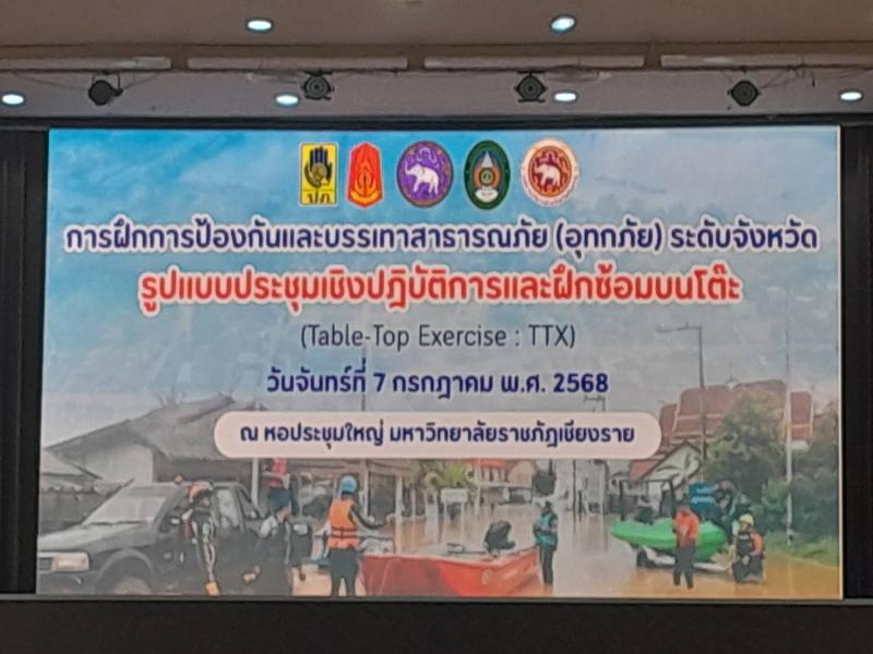 รายละเอียด : วันที่ 7 กรกฏาคม 2568 นายรัฐศาสตร์ สมฟอง นายกเทศมนตรีตำบลเวียงป่าเป้า ได้มอบหมายให้ นายกมล ทาอุปรงค์ รองนายกเทศมนตรีตำบลเวียงป่าเป้า เข้าร่วมประชุมการฝึกการป้องกันและบรรเทาสาธารณภัย (อุทกภัย) ระดับจังหวัด รูปแบบประชุมเชิงปฏิบัติการและฝึกซ้อมบนโต๊ะ (Table - Top Exercise : TTX) ณ หอประชุมใหญ่มหาวิทยาลัยราชภัฏเชียงราย