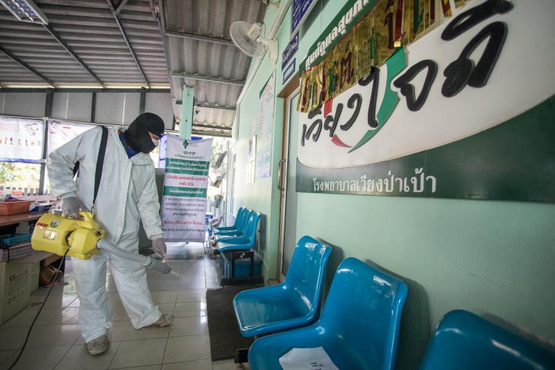 วันที่ 10 เมษายน 2563 เวลา 15.00 น. เทศบาลตำบลเวียงป่าเป้า ได้ออกพ่นน้ำยาฆ่าเชื้อเพื่อป้องกันการระบาดของไวรัส COVID-19 โดยได้มีการใช้น้ำยาฆ่าเชื้อผสมคลอรีนใส่รถบรรทุกน้ำฉีดพ่นบริเวณรอบนอกอาคาร และใช้เครื่องพ่นละอองฝอยใส่น้ำยาฆ่าเชื้อพ่นภายในอาคาร และจุดเสี่ยงต่างๆ ซึ่งเป็นการช่วยป้องกันการแพร่ระบาดของไวรัส COVID-19 อีกทางหนึ่ง ณ โรงพยาบาลเวียงป่าเป้า ต.เวียง อ.เวียงป่าเป้า จ.เชียราย