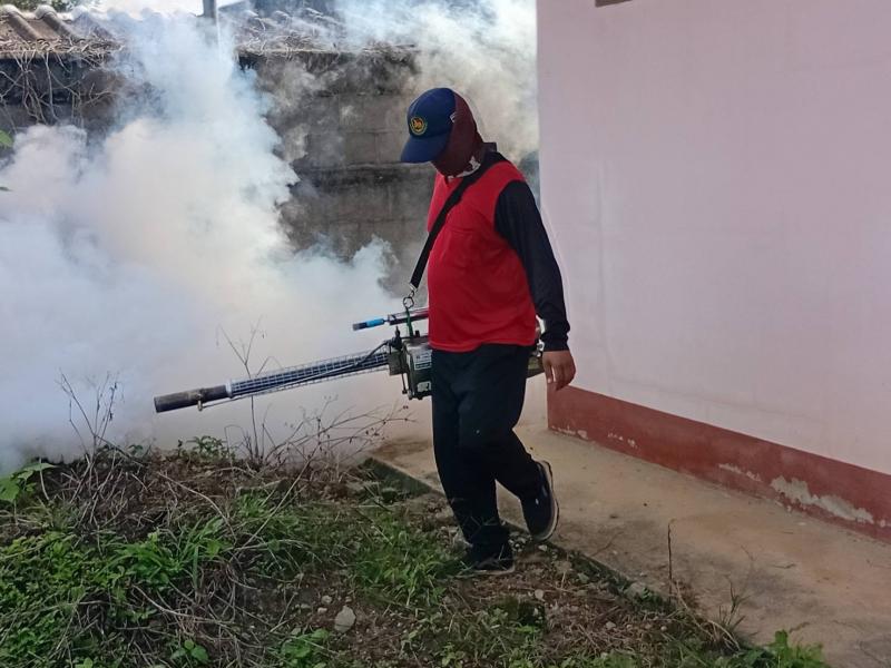 ดำเนินการพ่นหมอกควันกำจัดยุงลาย , สเปรย์ไล่ยุงและแจกทรายอะเบท เพื่อควบคุมป้องกันโรคไข้เลือดออก ณ หมู่ที่ 1 ชุมชนหัวเวียง