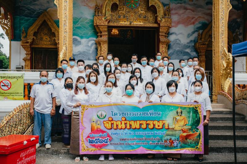 ว่าที่ร้อยตรี ณรงค์เดช จิยะพงศ์ นายกเทศมนตรีตำบลเวียงป่าเป้า พร้อมทีมผู้บริหาร ประธานสภาเทศบาลฯ สมาชิกสภาเทศบาลฯ ผู้อำนวยการกอง พนักงาน เจ้าหน้าที่ เทศบาลตำบลเวียงป่าเป้า และพุทธศาสนิกชนในเขตเทศบาลตำบลเวียงป่าเป้า ร่วมกันถวายเทียนพรรษา ณ วัดศรีสุทธาวาส ตำบลเวียง อำเภอเวียงป่าเป้า จังหวัดเชียงราย เพื่อส่งเสริมวัฒนธรรมประเพณีเข้าพรรษาและวันอาสาฬหบูชา ประจำปี 2564 ที่ถือปฏิบัติกันมาเป็นประจำทุกปี ตั้งแต่ครั้งโบราณกาล เพื่อเป็นการเชิดชูพระพุทธศาสนา ส่งเสริมประเพณีอันดีงามของท้องถิ่น รักษาไว้ซึ่งประเพณีอันดีงามของชาวพุทธไม่ให้สูญหายไป