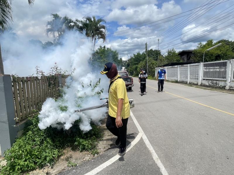 พ่นหมอกควันกำจัดยุงลายเพื่อควบคุมป้องกันโรคไข้เลือดออก ณ หมู่ที่ 6 ชุมชนบ้านกู่