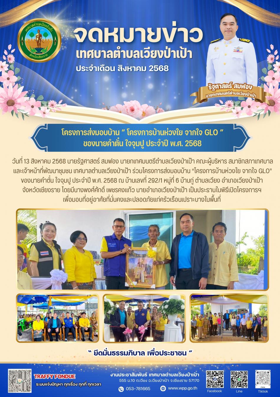 ยินดีต้อนรับ เข้าสู่เว็บไซต์ เทศบาลตำบลเวียงป่าเป้า จังหวัดเชียงราย