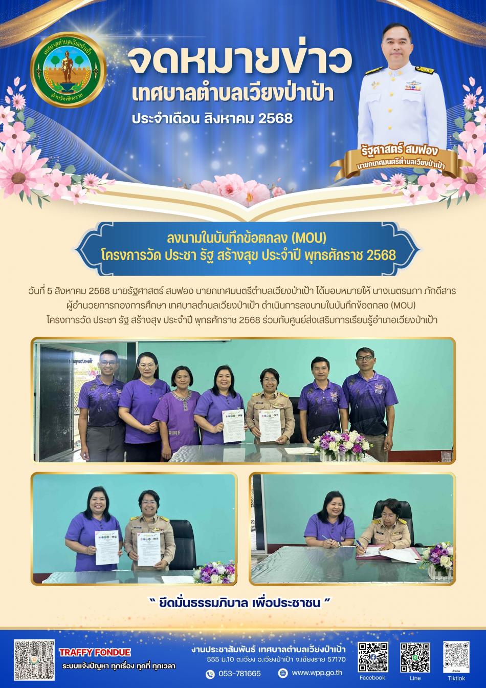 ยินดีต้อนรับ เข้าสู่เว็บไซต์ เทศบาลตำบลเวียงป่าเป้า จังหวัดเชียงราย