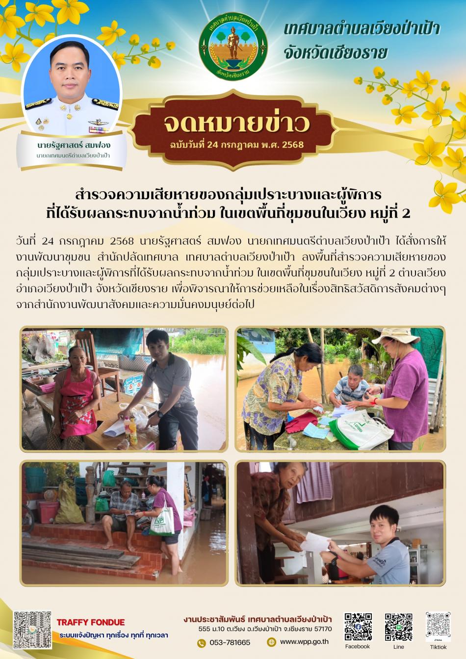 ยินดีต้อนรับ เข้าสู่เว็บไซต์ เทศบาลตำบลเวียงป่าเป้า จังหวัดเชียงราย
