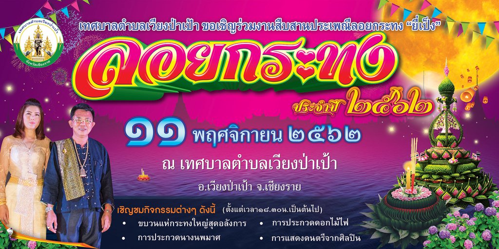 เชิญเที่ยวงานสืบสานประเพณีลอยกระทง ยี่เป็ง ประจำปี ๒๕๖๒ เทศบาลตำบลเวียงป่าเป้า เทศบาลตำบลเวียงป่าเป้า ขอเชิญร่วมงานสืบสานประเพณีลอยกระทง " ยี่เป็ง "