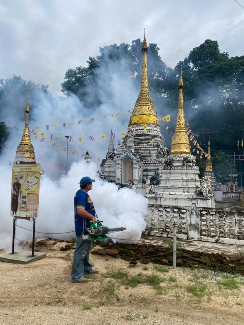 พ่นหมอกควันป้องกันและควบคุมโรคไข้เลือดออก ณ บริเวณพื้นที่ชุมชนศรีเวียงทอง หมู่ที่ 10