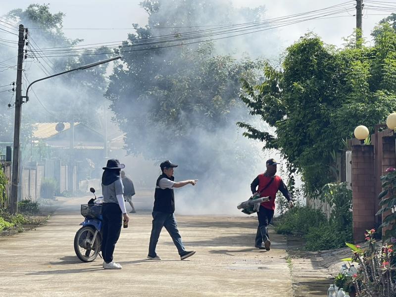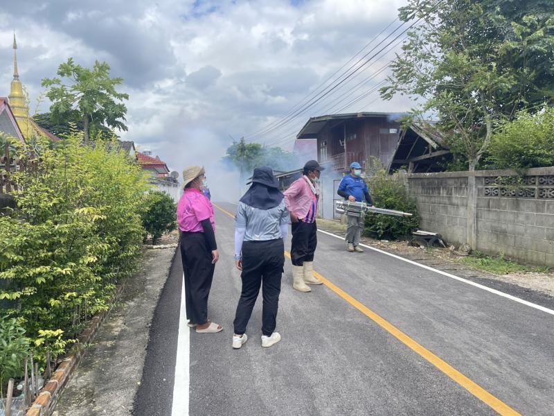 พ่นหมอกควันป้องกันและควบคุมโรคไข้เลือดออก ณ บริเวณพื้นที่ชุมชนในเวียง หมู่ที่ 2