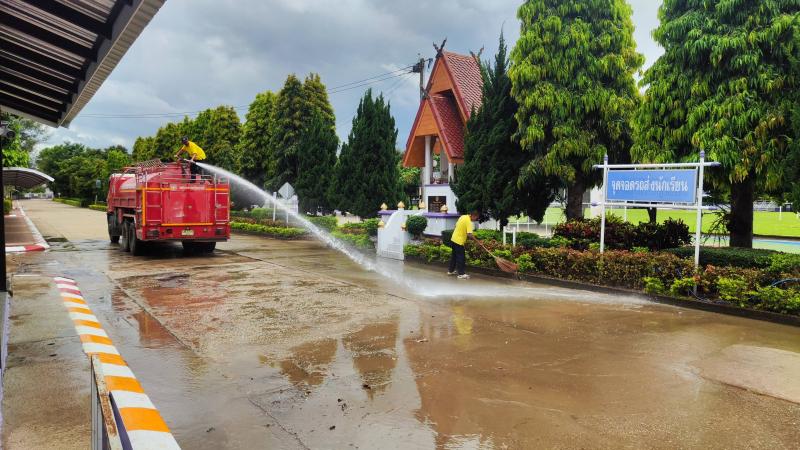 งานป้องกันฯ ล้างทำความสะอาดถนนภายในบริเวณโรงเรียนเวียงป่าเป้าวิทยาคม ตามที่ขอความอนุเคราะห์