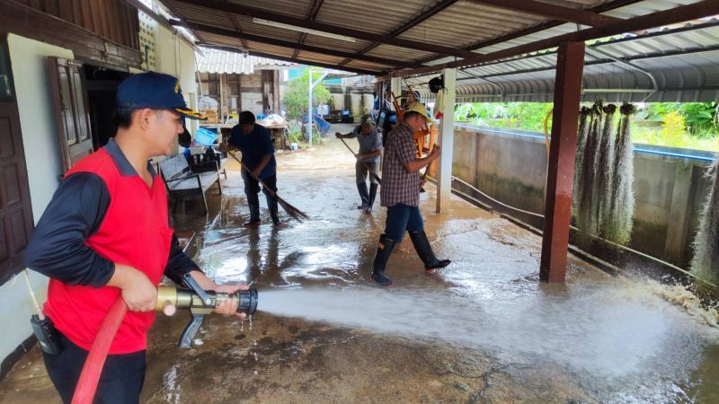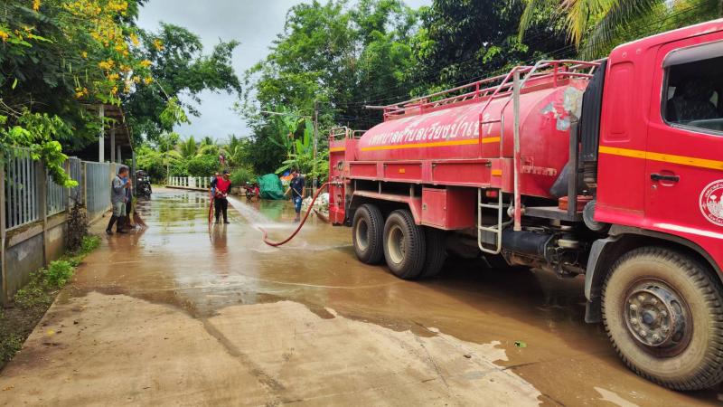 ล้างทำความสะอาดถนนและบ้านเรือนของประชาชนที่ได้รับผลกระทบ จากน้ำท่วม