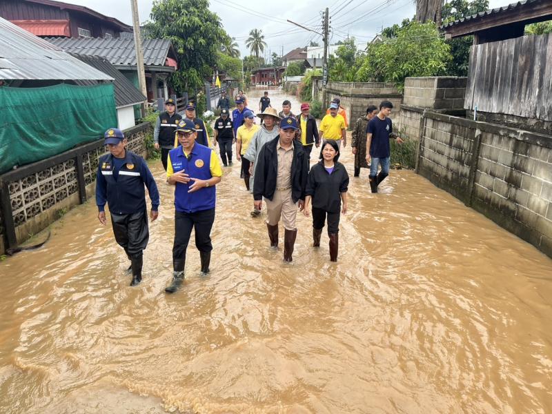 ปลัดจังหวัดเชียงราย ลงพื้นที่ตรวจเยี่ยมและติดตามสถานการณ์อุทกภัยในพื้นที่ชุมชนในเวียง หมู่ที่ 2