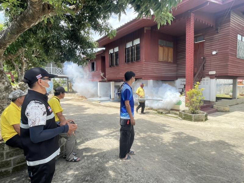 พ่นหมอกควันกำจัดยุงลายเพื่อควบคุมป้องกันโรคไข้เลือดออก ณ หมู่ที่ 6 ชุมชนบ้านกู่