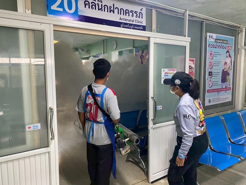 พ่นหมอกควันป้องกันและควบคุมโรคไข้เลือดออก ณ โรงพยาบาลเวียงป่าเป้า