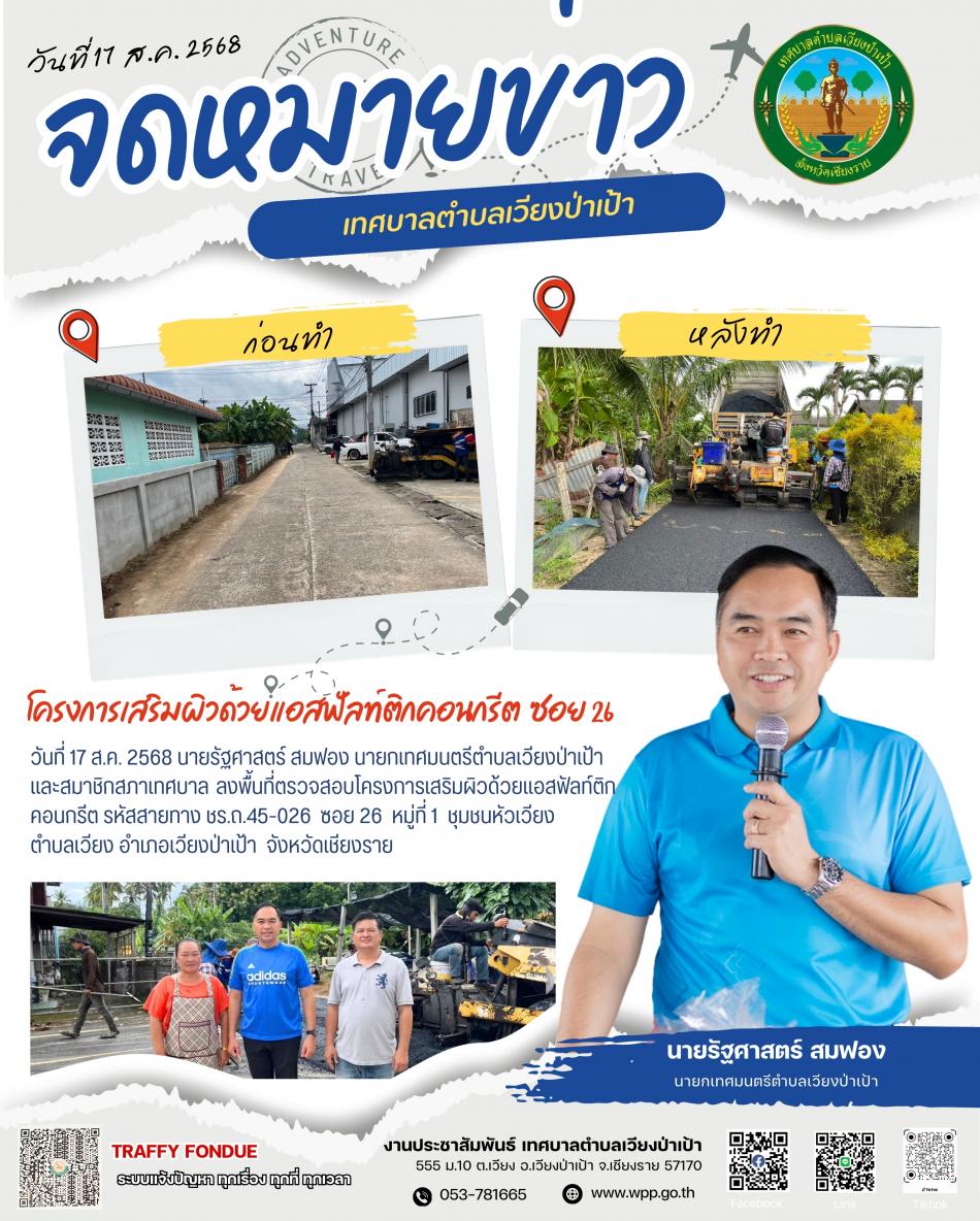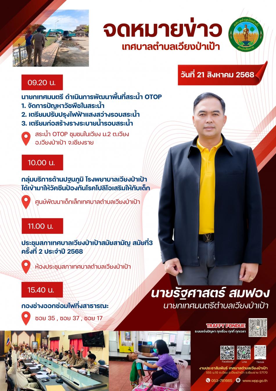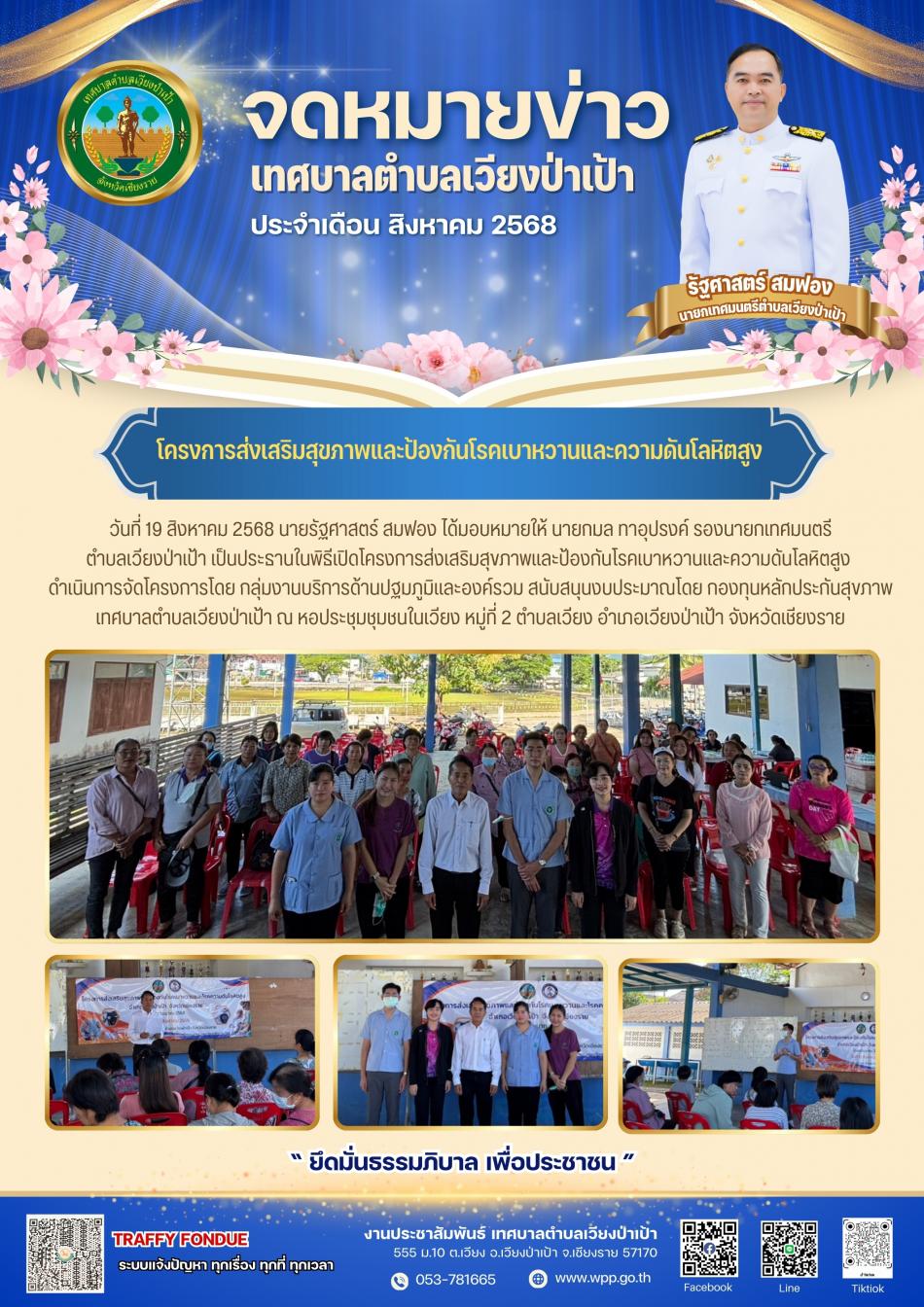 ยินดีต้อนรับ เข้าสู่เว็บไซต์ เทศบาลตำบลเวียงป่าเป้า จังหวัดเชียงราย