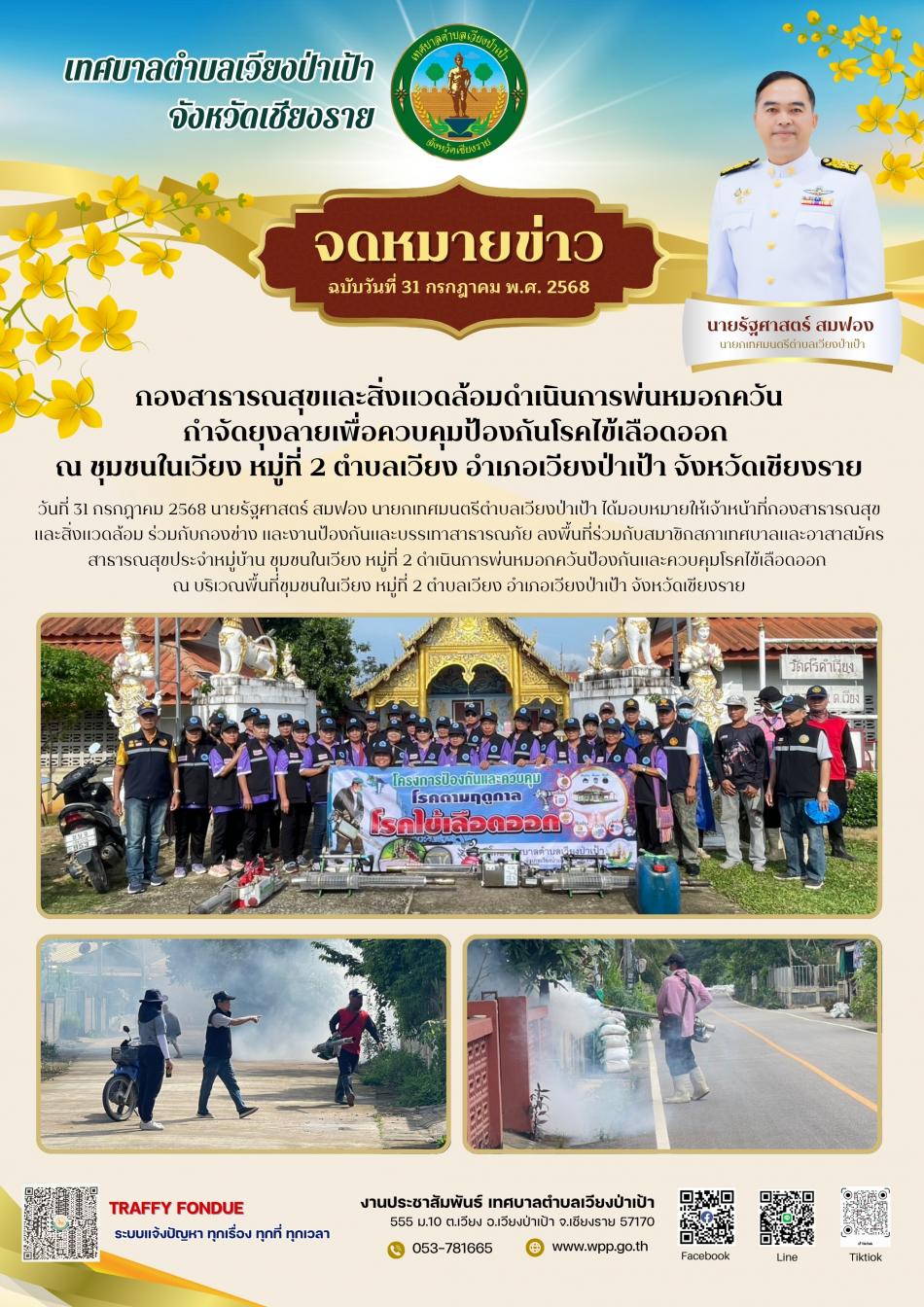 ยินดีต้อนรับ เข้าสู่เว็บไซต์ เทศบาลตำบลเวียงป่าเป้า จังหวัดเชียงราย
