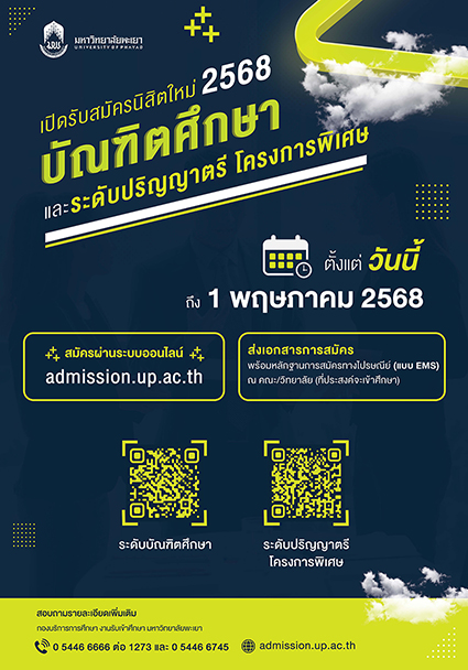 ชื่อเรื่อง : มหาวิทยาลัยพะเยา เปิดรับสมัครบุคคลเพื่อคัดเลือกเข้าศึกษา ฯ ระดับบัณฑิตศึกษา และระดับปริญญาตรี
