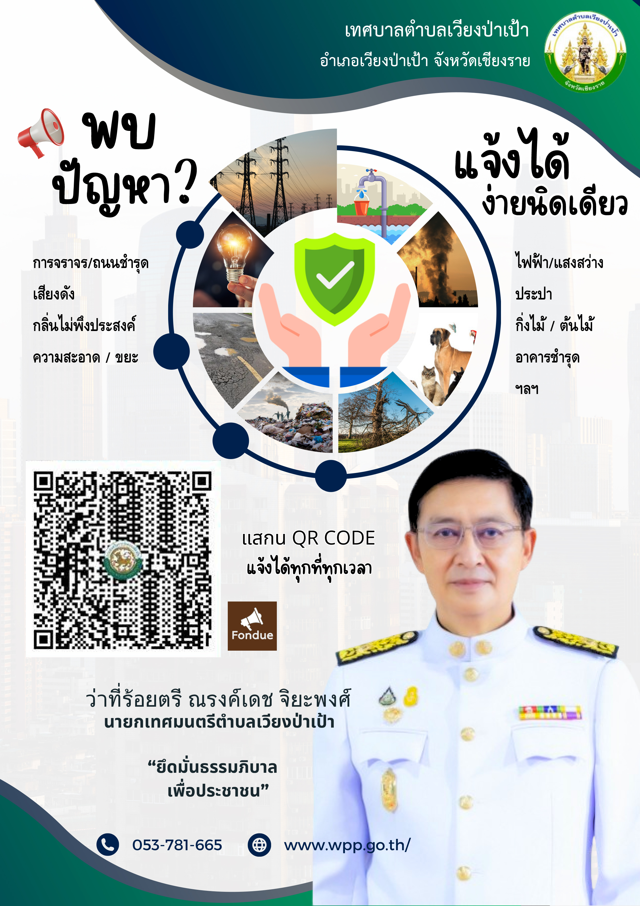 ชื่อเรื่อง : เทศบาลตำบลเวียงป่าเป้า ขอประชาสัมพันธ์ แพลตฟอร์ม Traffy Fondue แพลตฟอร์มสำหรับรับแจ้งและติดตามปัญหา